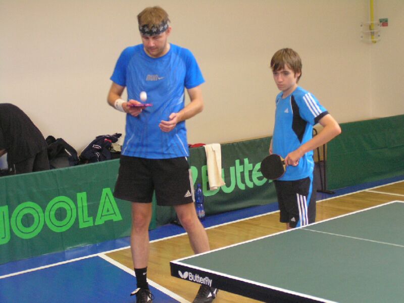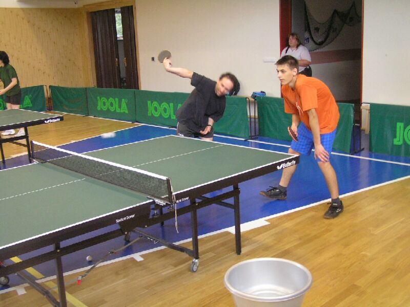 Marcel Tvarůžek a Roman Vašek při čtyřhře. Podává Tvarůžek.