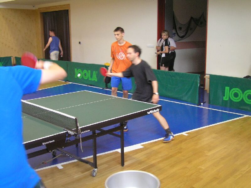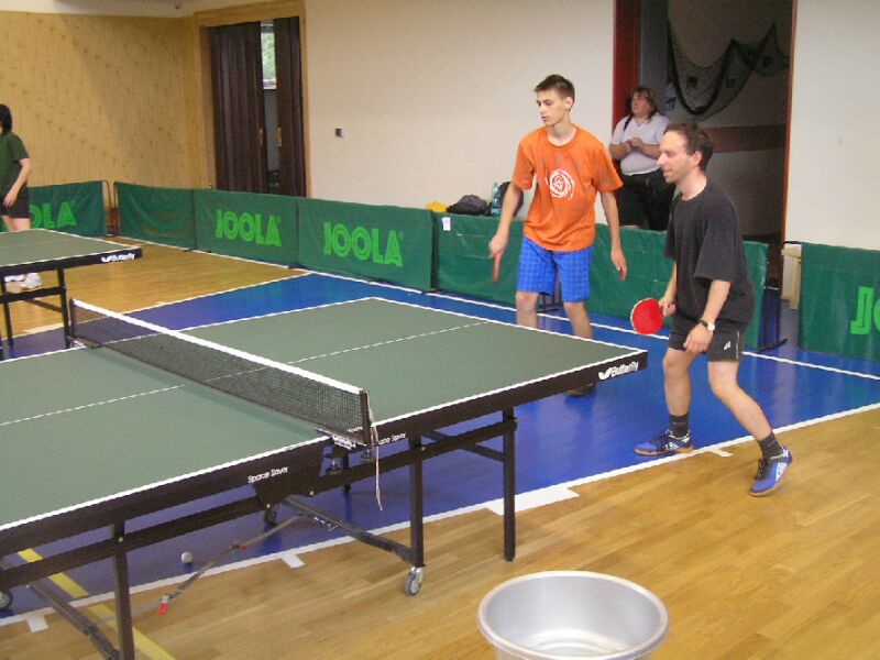 Tvarůžek a Medek hrají čtyřhru proti Pavelkovi a Vaškovi.
